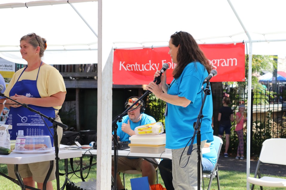 This year’s stage discussions centered on Southcentral Kentucky basket making, a pickin’ on the porch weekly jam session held at the local book store, and the celebration of Horse Cave’s bicentennial. The stage also featured a demonstration of Cindy Scott’s famous zucchini bread and its associations within their family memory. Aside from the stage, basket makers Leona Waddell and Charlene Long were present, demonstrating basketmaking, and answering questions from festival goers.