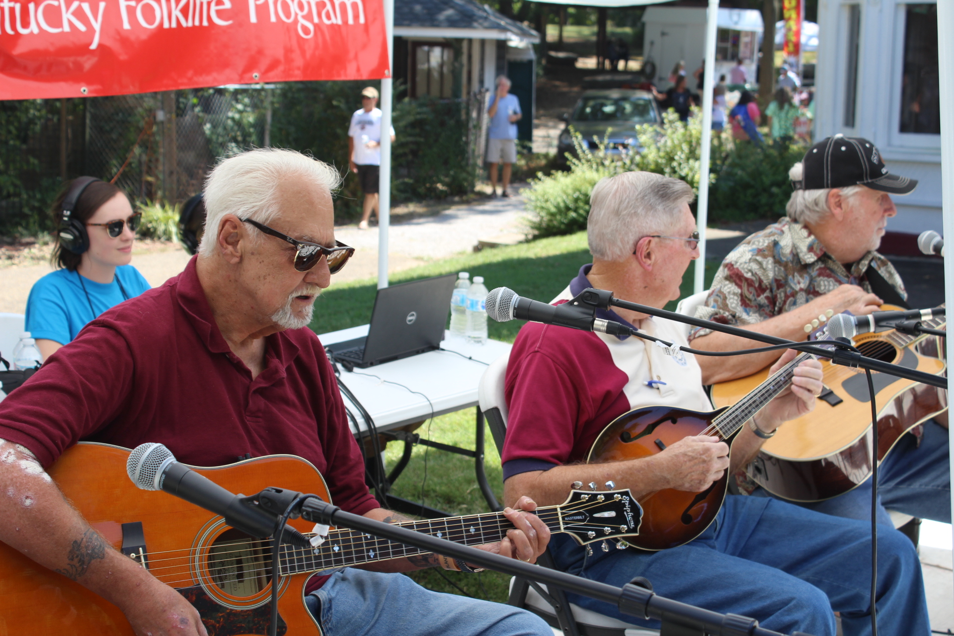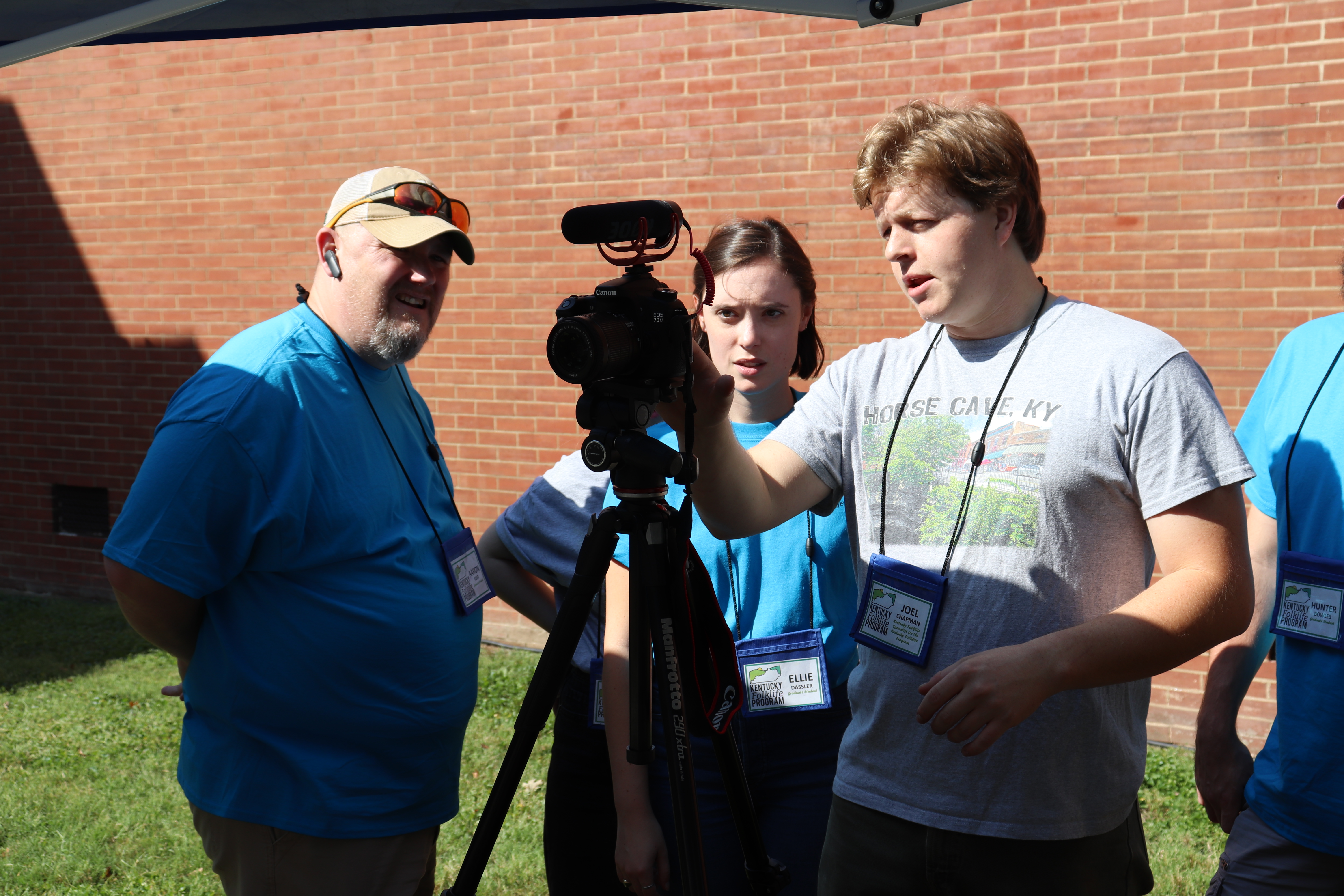 On Saturday, September 21st, graduate students, faculty, and staff in the WKU Folk Studies Program and Kentucky Folklife Program partnered to produce the Chattin’ on the Porch stage at the Horse Cave Heritage Festival in Horse Cave, Kentucky. A yearly tradition, this event serves as a key opportunity for Folk Studies students to gain fieldwork and festival production skills. Under the guidance of Kentucky Folklife Program staff and Folk Studies faculty, students take the lead in presenting the event: students interview local tradition-bearers from Horse Cave and Hart County live on stage, document the stage with professional video and audio recording equipment, and learn how to set-up the stage’s sound system (from the mixer to the microphones). It is a wonderful excuse to get out and connect with the communities that surround Bowling Green and Western Kentucky University.