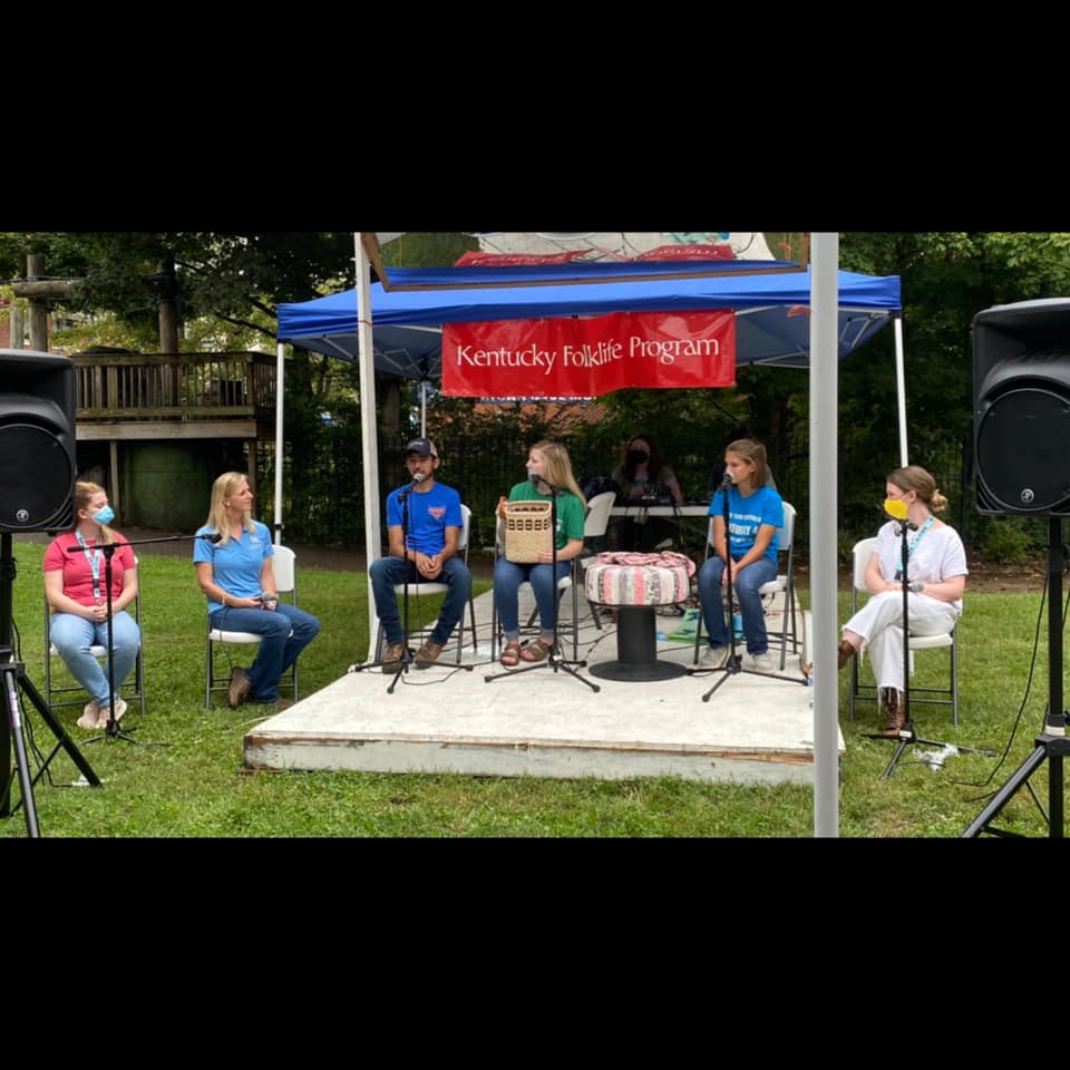 The Kentucky Folklife Program had a great time at the Horse Cave Heritage Festival on Saturday, despite a rainy start. We hosted a narrative stage featuring a bbq sauce demonstration by Barry Locke, Jammin’ on the Porch with local musicians Tony, Jimmy, Reggie and friends. The last half of the day we talked about 4-H and traditions with Amber Huffman and youth members of 4-H. We finished the day with agricultural traditions with Paul Dennison and Andre Barbour. All these narratives were lead, filmed and recorded by WKU Folk Studies Graduate Students! We love being able to participate in these community events and exploring communities in Kentucky!