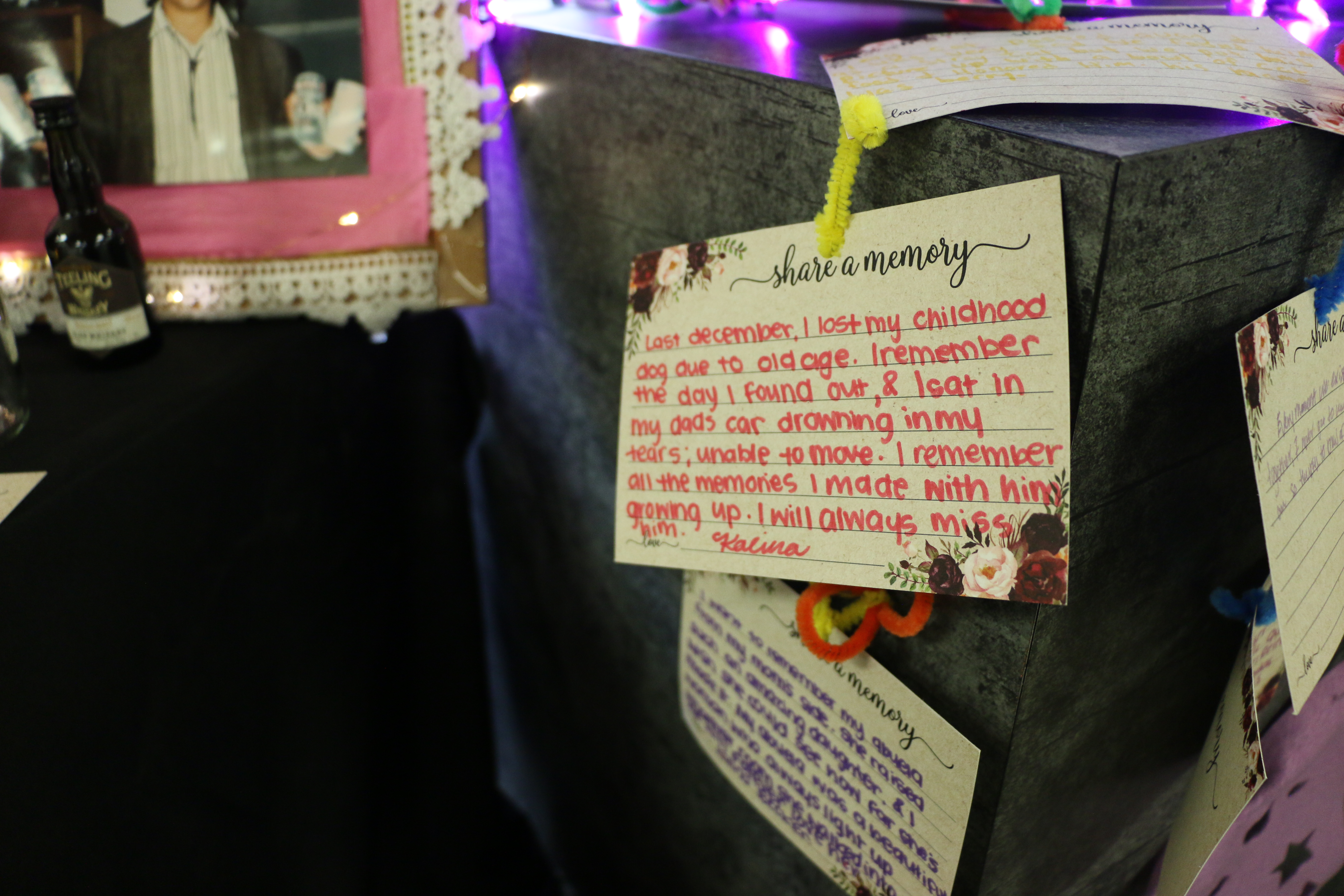 One of the most important aspects of this ongoing project is to share the message that grieving never has to be experienced alone. Oftentimes, we are taught that grieving ends the moment your loved one passes on – the moment the funeral concludes. But of course, while everyone’s experience is unique, grieving is never linear. It is present when you eat ice cream cones on the pier, when you watch your favorite Fall film as the leaves turn bright orange, when you get accepted to a university that you’ve worked so hard for – grief, although often feared, is a friend to many. Campbell Lahman, WKU International Affairs & Chinese Major placed a coke can on the ofrenda alongside her other items. She mentioned one of her loved ones always offered a safe space to talk, alongside a crisp Coke Zero. Campbell stated, “The ofrenda was a beautiful space for me to remember my loved ones who’ve passed, and to see other people remember their loved ones as well. Even though I don’t know all the stories represented on the ofrenda, I saw that I was not the only one grieving, and that experiencing love and loss is something we all have in common. I’m proud of the traditions that make space for grief, and I’m grateful to the KFP for organizing such a necessary space for us to remember together.”