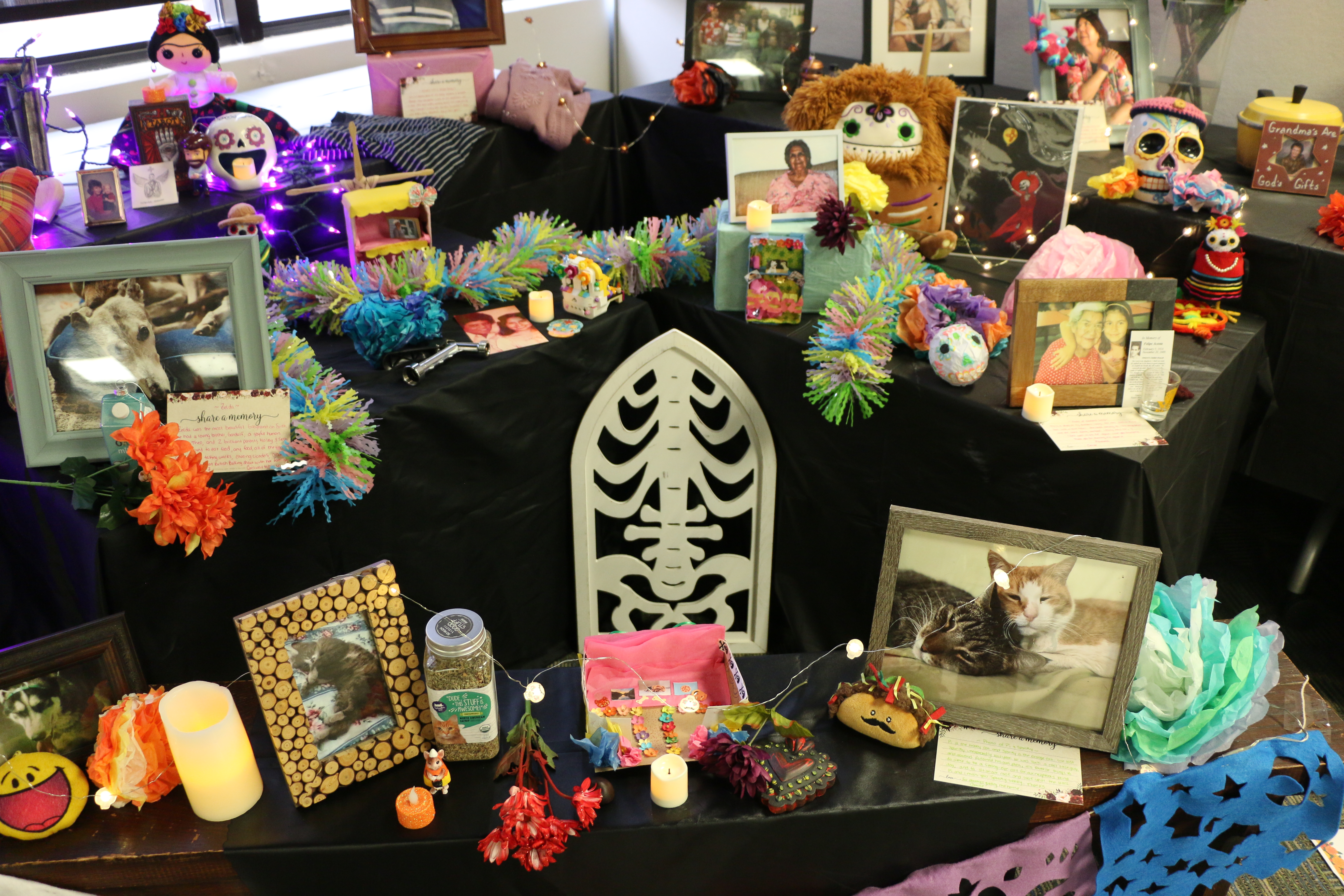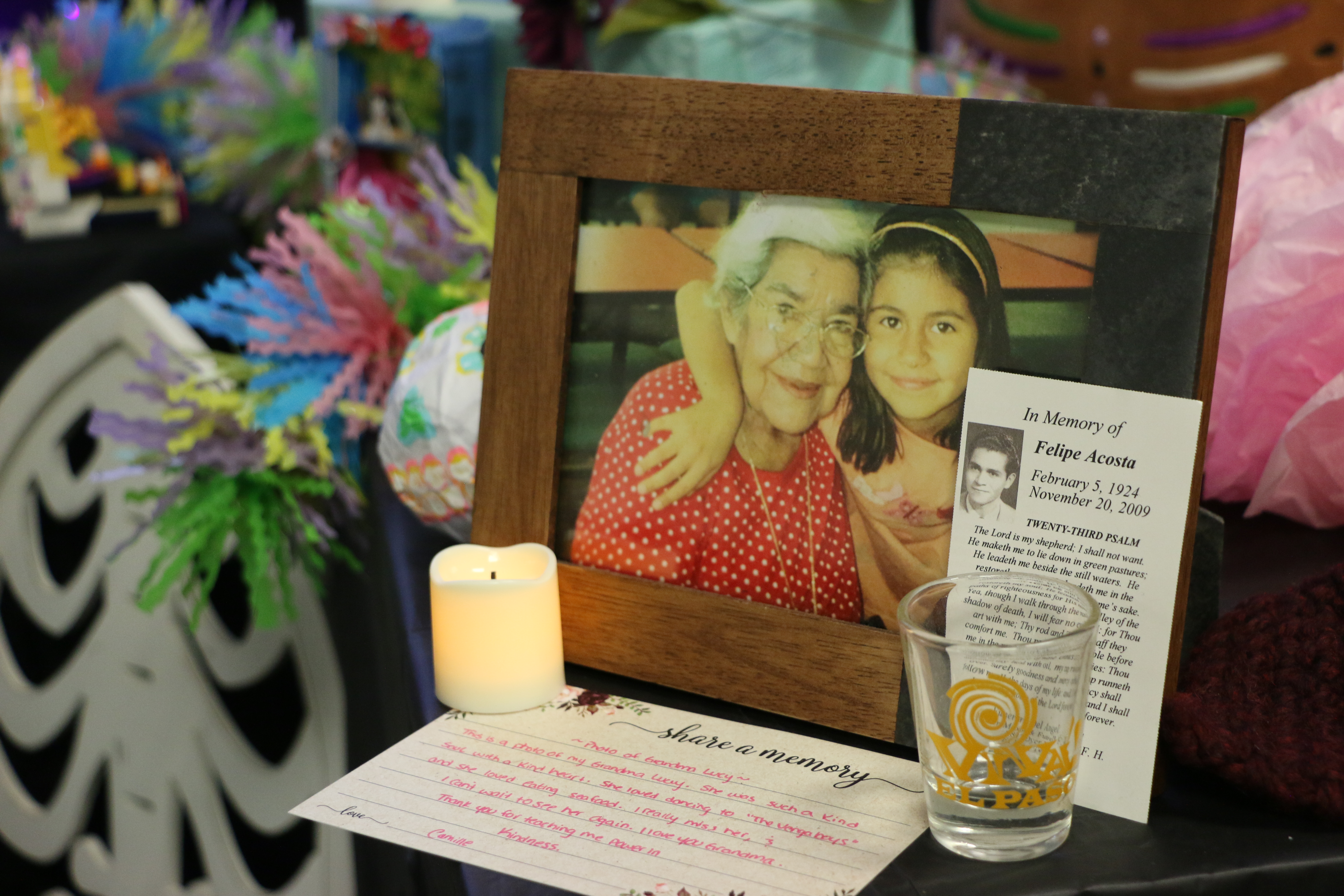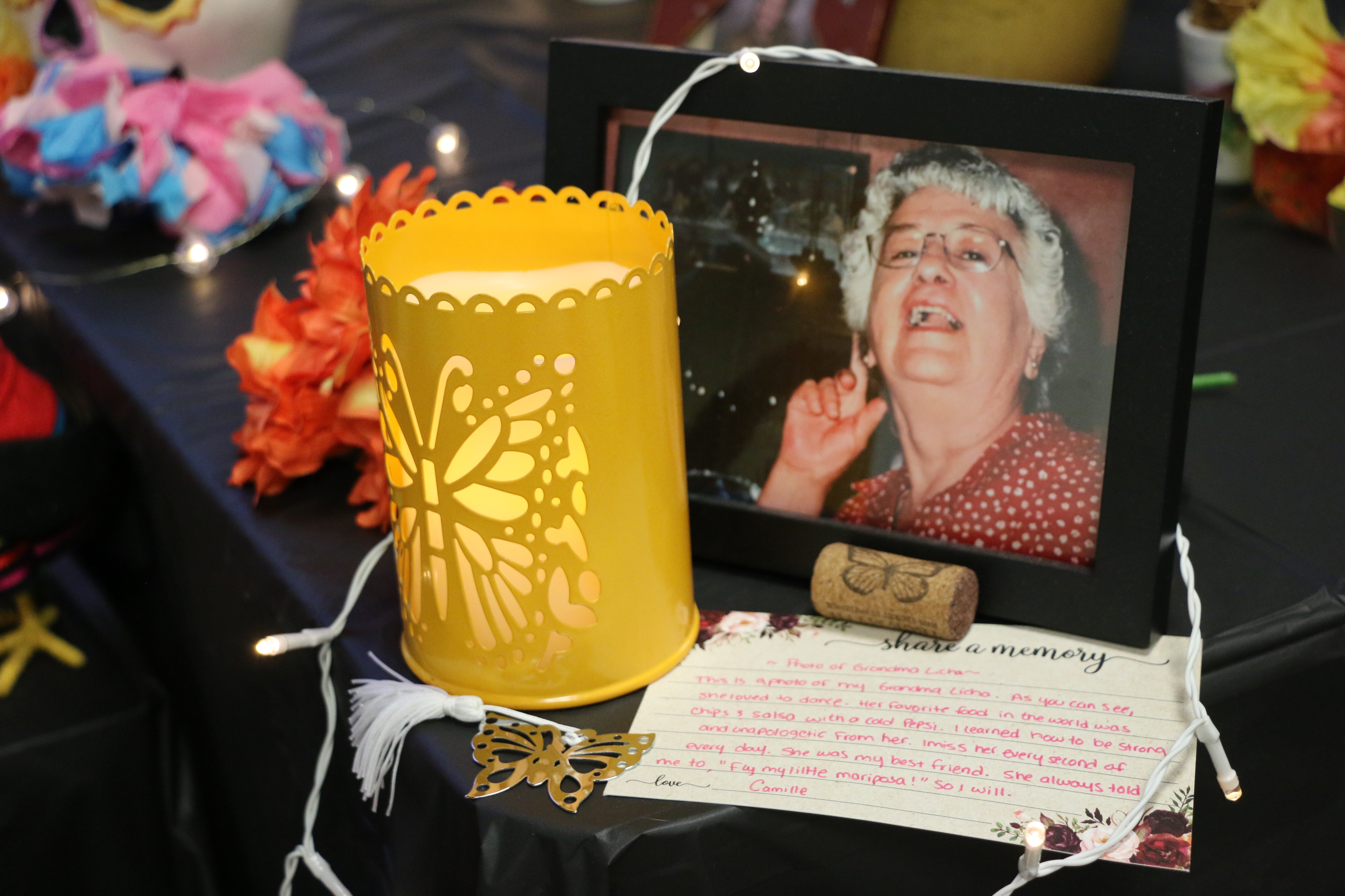 Images of memories, commemorations and pictures from the 2025 Día de los Muertos Community Ofrenda; PC: Camille Maria Acosta